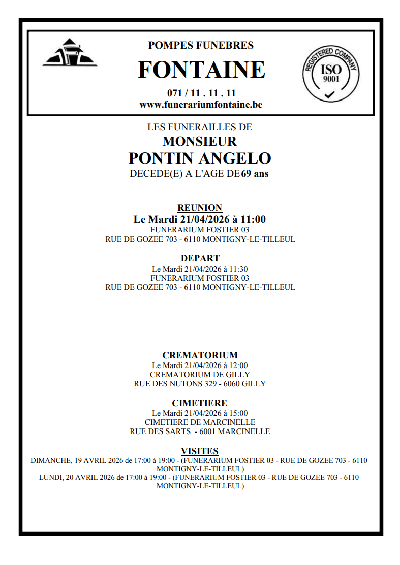 Décès du papa d’Adrien par Regis Ega · 15 avril 2026 Bonjour à tous. Nous venons d’apprendre le décès du papa d’Adrien Pontin. Le comité présente ses plus sincères condoléances à Adrien, à Chantal et à la famille.Les informations à propos des funérailles sont les suivantes: