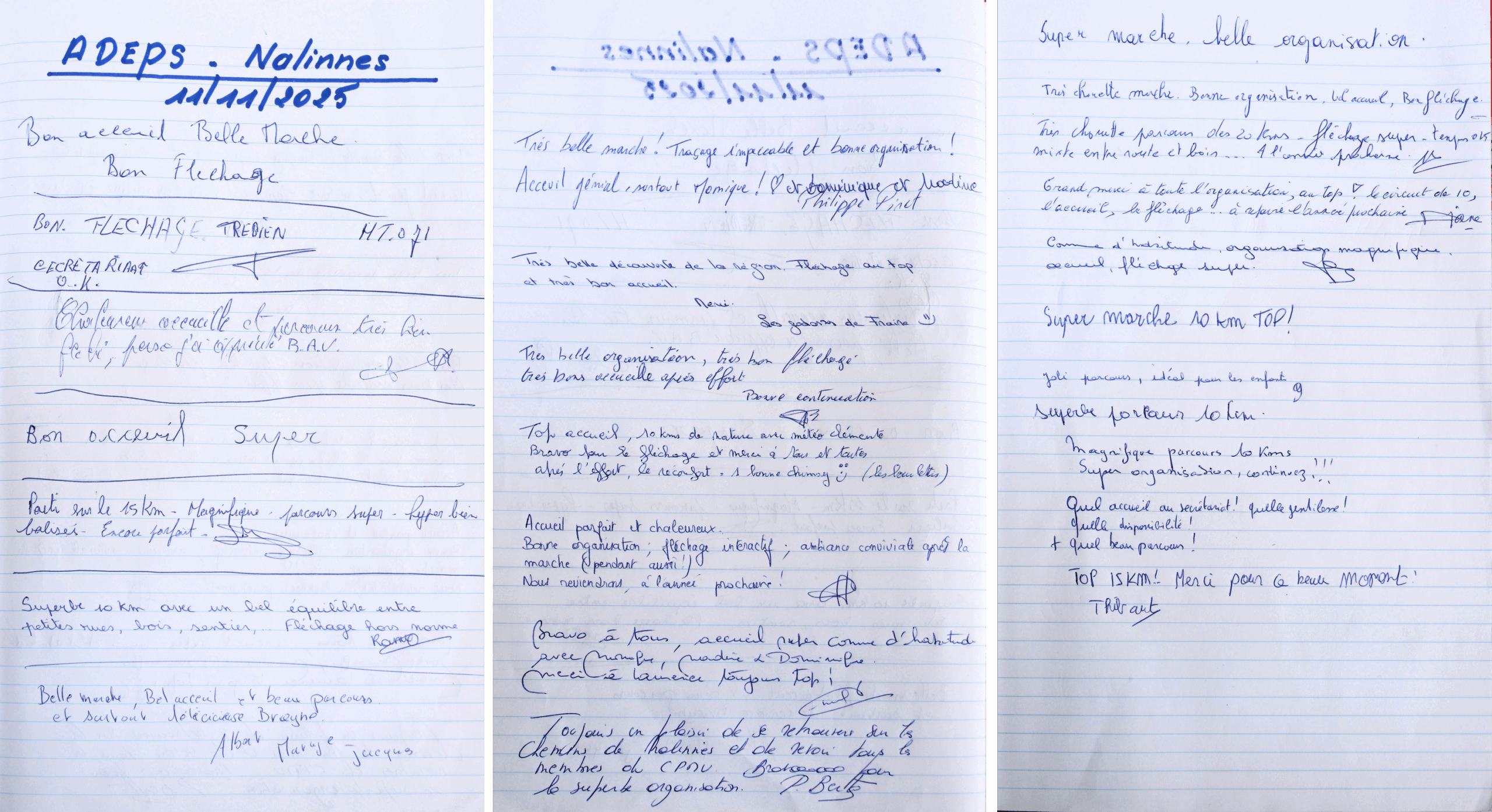 « C’est un énorme succès que le comité savoure pleinement mais qui n’aurait pas été possible sans l’aide des comitards et des membres bénévoles qui se sont investis pour créer les parcours, faire les reconnaissances, gérer l’approvisionnement, placer les affiches, documenter Facebook, poser le fléchage, procéder à la mise en place de la salle, gérer le secrétariat, fournir et distribuer les tartes, les gâteaux, les soupes, les croques, gérer les activités en cuisine, en salle, au bar, à la caisse, procéder au rangement, au défléchage, au nettoyage de la salle, etc… »