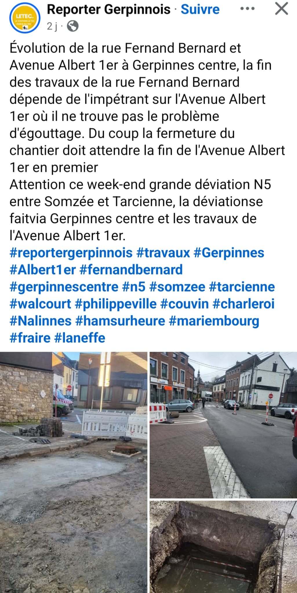 Ce sera donc un peu le bazar à Gerpinnes demain matin… Je vous conseille donc de prendre vos précautions en partant tôt et en évitant le centre de Gerpinnes.